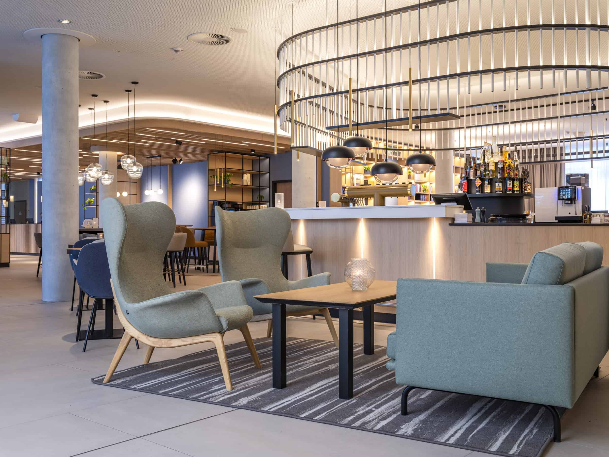 Der einladende Lounge-Bereich verbindet skandinavische Leichtigkeit mit gemütlicher Atmosphäre.